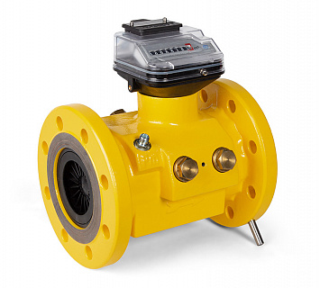 Конструктивно счетчик представляет собой корпус во фланцевом исполнении, в проточной части которого последовательно по потоку расположено устройство измерительное, состоящее из струевыпрямителя, корпуса, турбинного колеса, узла редуктора. Корпус имеет монтажные отверстия для установки гильз датчиков температуры, высокочастотных датчиков импульсов, место отбора давления.