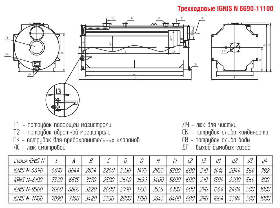 Технические характеристики водогрейного трёхходового котла для тепличных хозяйств ARCUS IGNIS N-6690